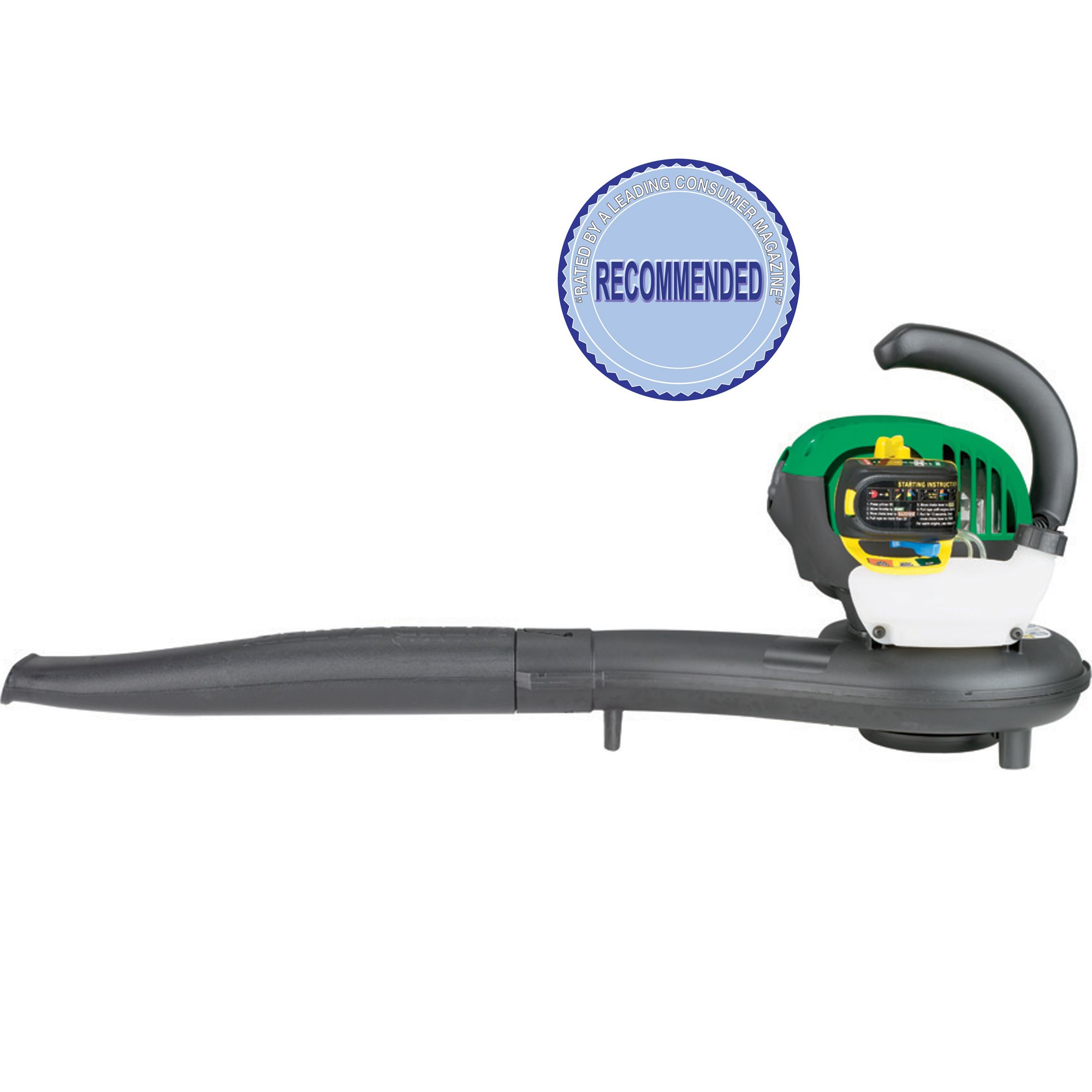 For a Quick Clean Up, Use This 2-Cycle Handheld Gas BlowerThe Weedeater 2-Cycle Handheld Gas Blower is ideal for clearing your yard, driveway and sidewalks. With a 25cc, two-cycle gas engine, it is suitable for use on patios as well. You can adjust the air speed according to your need with the speed throttle control. Reaching a maximum air speed of 170mph and a volume of 290 CFM, your most elaborate cleaning chores will get done in no time. Featuring a simple pull start, this blower is easy to operate. This 2-Cycle Handheld Gas Blower has an anti-vibration handheld handle to reduce user fatigue. Now you can complete all your chores easily and quickly. Available in an attractive green color, this gas blower is stylish as well. The next time you need to clear your yard, just carry this lightweight blower with you and your job will get done in a matter of minutes. Reviews the Weedeater 25cc 2-Cycle Gas Blower or similar products
