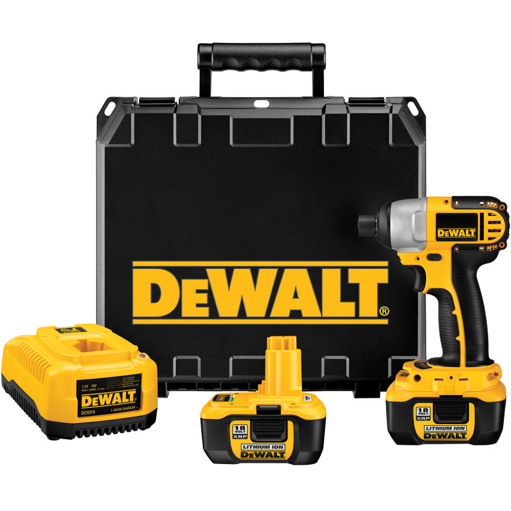 1/4" 18 Volt Cordless XRP Li-Ion Impact Driver Kit with Frameless Motor and 1,330 Inch Pounds of TorqueThe DeWalt 1/4" 18 volt cordless xrp li-ion impact driver is extremely durable and efficient. This amazing tool features a compact size and lightweight design which allows users to get into tight spaces when performing applications. Making these even more versatile is the frameless motor with replaceable brushes for extended tool durability and life. Features: Frameless motor with replaceable brushes for extended tool durability and life Compact size and lightweight design allows user to get into tight spaces when performing applications1,330 in-lbs of torque to perform a wide range of fastening applications0-2,400 rpm/0-2,700 ipm for faster application speed Replaceable brushes for increased serviceability Textured ant-slip comfort grip provides maximum comfort and control Durable magnesium gear case and all-metal transmission for extended durability Heavy-duty impact mechanism directs torque to fastener without kickbackDEWALT 18V XRP Li-Ion Batteries offer long battery life & durability: 2,000 recharges Includes:1 hour charger(2) 18V XRP Li-Ion batteries Kit BoxSpecifications: Voltage: 18VDrive Size: 1/4" hex shank quick release inNo Load Speed: 0-2,400 rpm Impacts/Min: 0-2,700 ipm Max Torque: 1,330 in-lbs Max Torque: 111 ft-lbs Tool Weight: 3.7 lbs Tool Length: 5-3/4"Shipping Weight: 10.54 lbsDEWALT is firmly committed to being the best in the business, and this commitment to being number one extends to everything they do, from product design and engineering to manufacturing and service. Reviews the DEWALT 18-Volt 1/4-in Cordless Impact Driver DC827KL or similar products